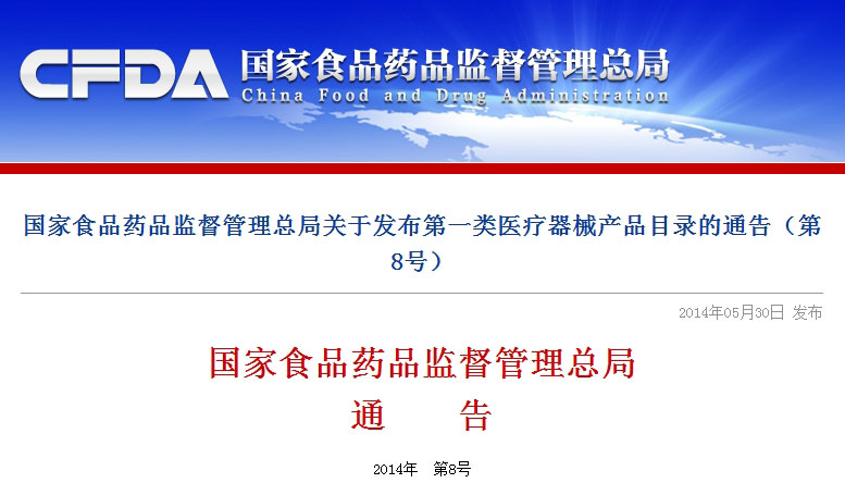 關于發(fā)布第一類醫(yī)療器械產品目錄的通告