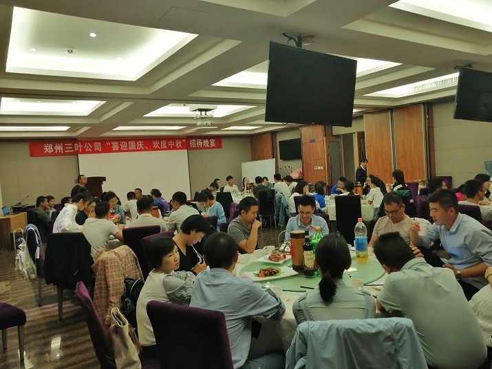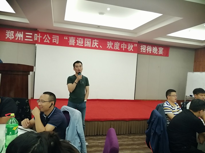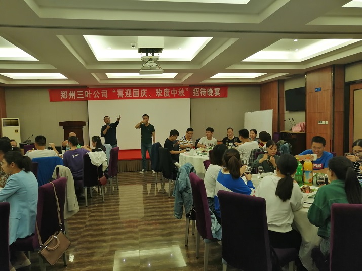 “月是故鄉(xiāng)明,今年分外圓”!2019年9月12日,恰逢雙節(jié)來臨之際,鄭州三葉公司在鄭州海天假日酒店舉行“喜迎國慶、歡度中秋”招待晚宴。在晚宴進行過程中,各位員工爭先恐后踴躍發(fā)言,有的講述著自己與三葉公司的故事,有的描述著對未來的期待,還有的表達著自己對祖國70華誕的祝?!?/span>