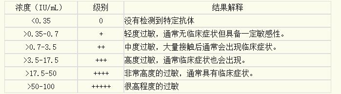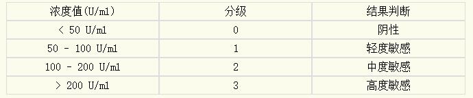 Ⅲ型遲發(fā)型過敏反應(yīng)IgG結(jié)果分級