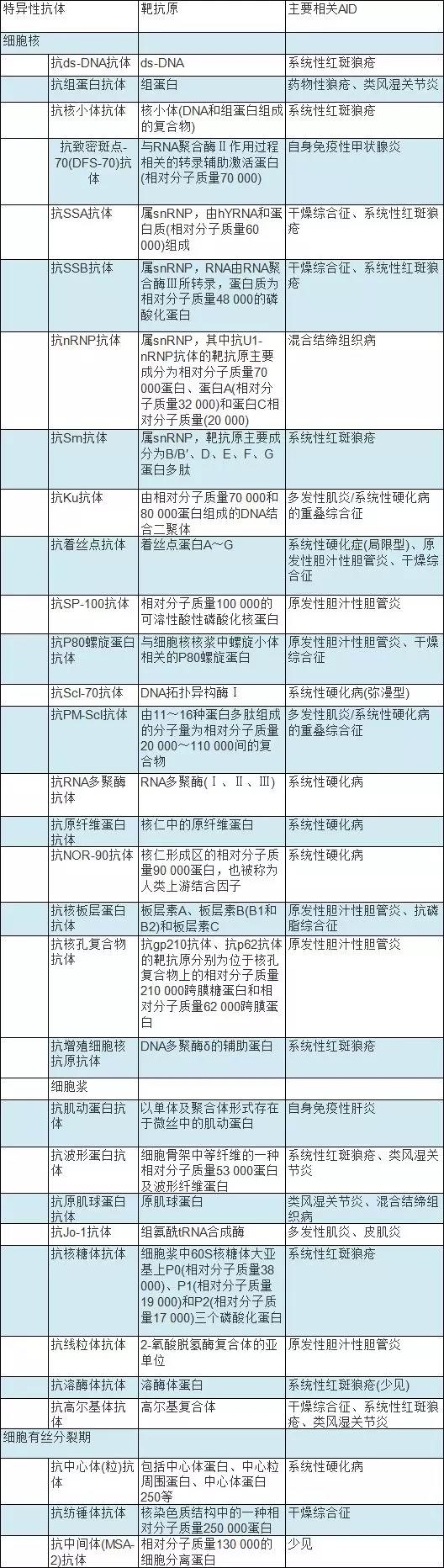 表2 ANA常見特異性自身抗體相關(guān)靶抗原及其主要相關(guān)AID