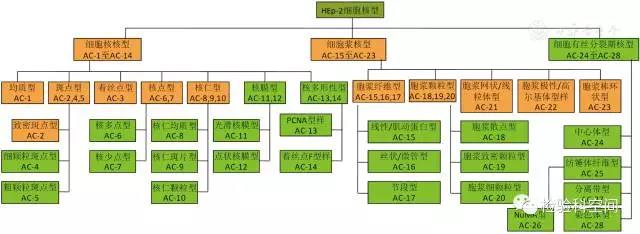 抗核抗體HEp-2細(xì)胞間接免疫熒光染色模型分類及命名[6]